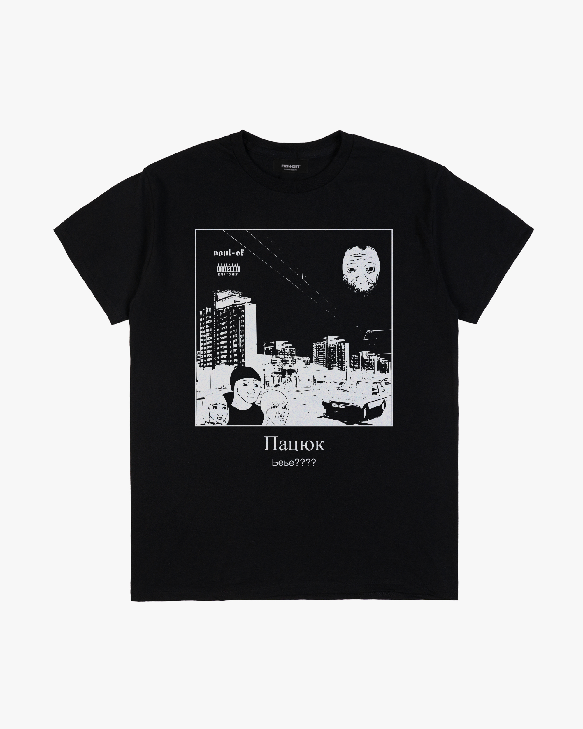 Футболка за мотивами касети ««Ьеье???? (Deluxe Edition)» ню-метал гурту Пацюк. Святкуємо спадок сімнадцятирічного Миколи Пацюка, який зумів перевернути андеграунд піснями про життя в провінції, локальні меми й звісно гімно і сцяки, ще у далекому 2019 році.